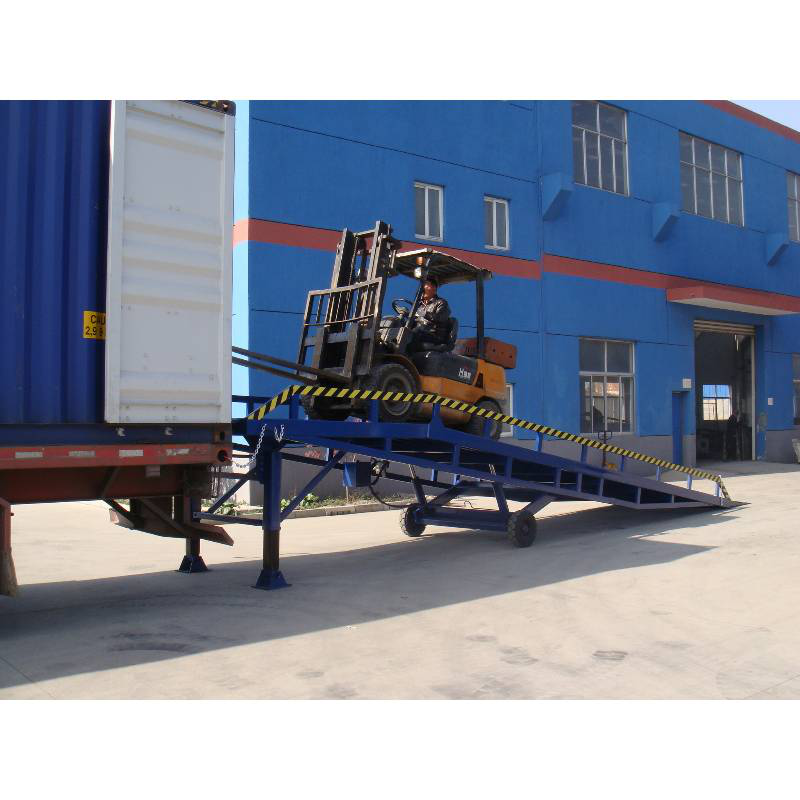 移動(dòng)式登車橋廣泛用于無裝卸設(shè)備的貨臺(tái)及流動(dòng)裝卸場所,是與叉車配合使用的貨物裝卸輔助設(shè)備。借助移動(dòng)式登車橋,叉車能直接駛?cè)肫嚰b箱內(nèi)部進(jìn)行批量裝卸作業(yè)。只需單人操作,不需動(dòng)力電源,即可實(shí)現(xiàn)貨物的安全快速裝卸